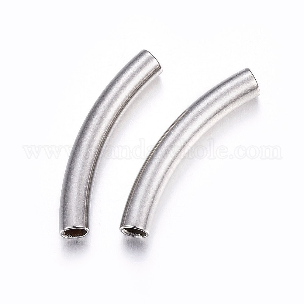 • Нержавеющая Сталь Цвет Устойчивые к потускнению 304 европейские трубчатые бусины из нержавеющей стали, изогнутые трубочки бусины лапши, изогнутая трубка, цвет нержавеющей стали, 40x6 мм, отверстие : 4.5x5 мм