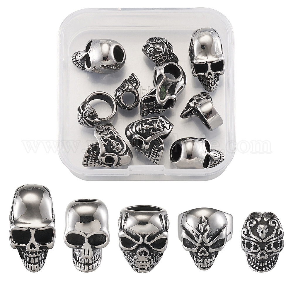 304 из нержавеющей стали европейские шарики, бусины с большим отверстием, череп головы