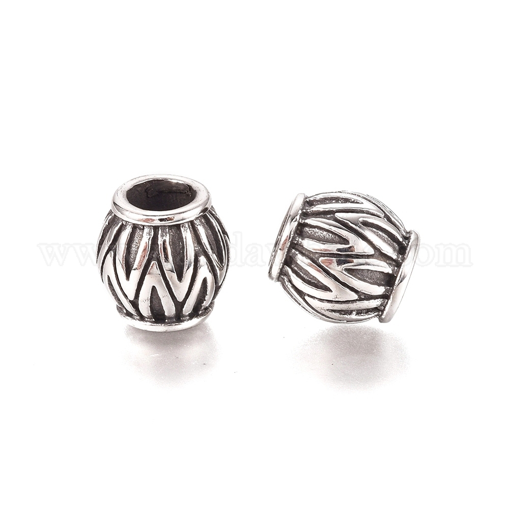 • Античное Серебро 304 из нержавеющей стали европейские шарики, бусины с большим отверстием, баррель, античное серебро, 10.5x10.5 мм, отверстие : 5 мм