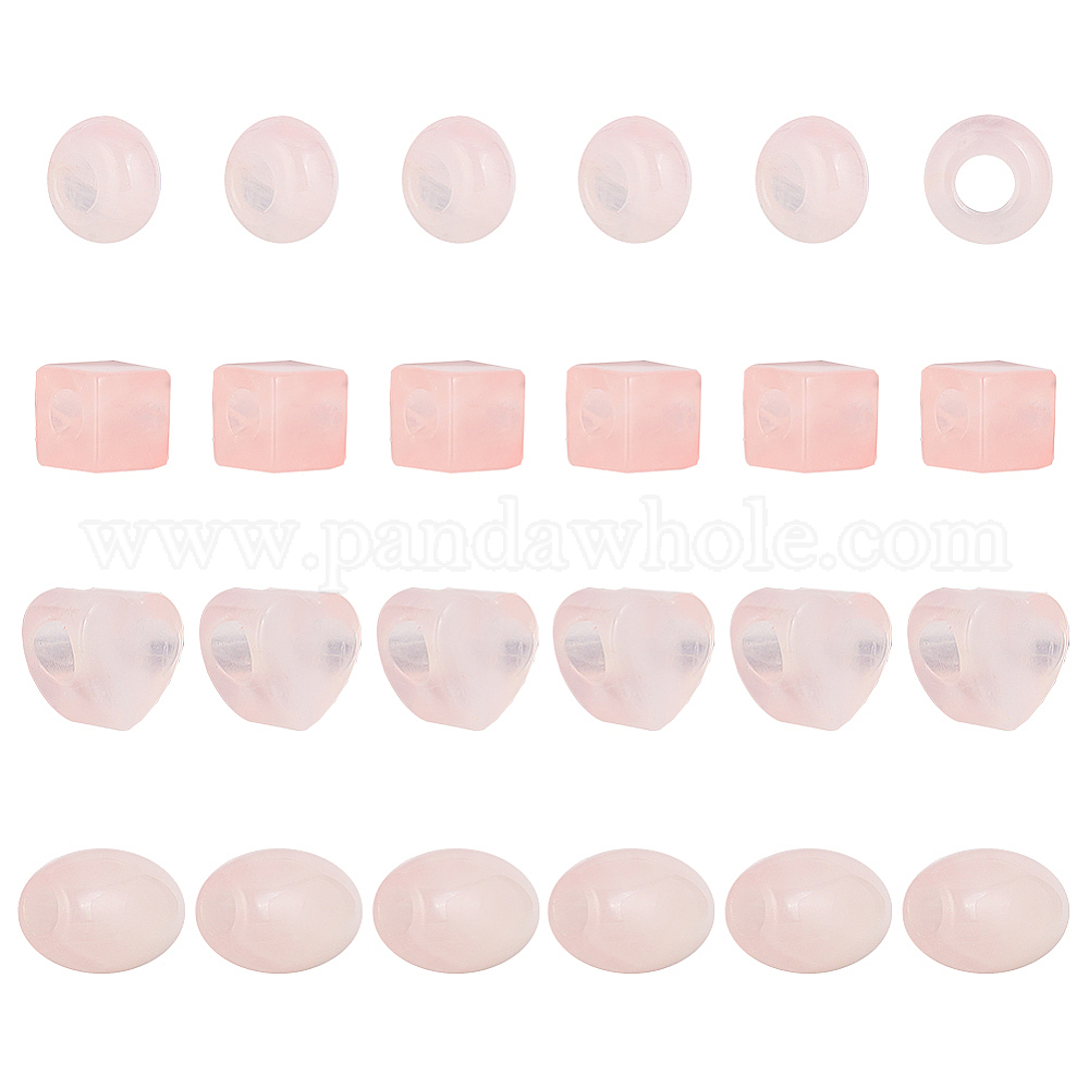 24шт 4 стили натуральный розовый кварц европейские бусины, бусины с большим отверстием, бочка, куб, сердце и рондель