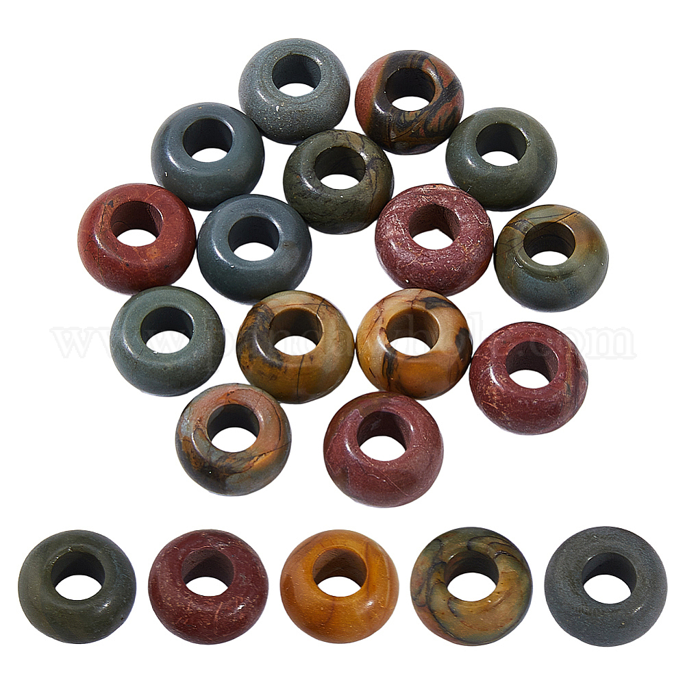 • Пикассо Камень 20 шт. натуральные европейские бусины из камня пикассо/полихромной яшмы, подвески рондель с большим отверстием, 14~15x7.5~8 мм, отверстие : 6 мм