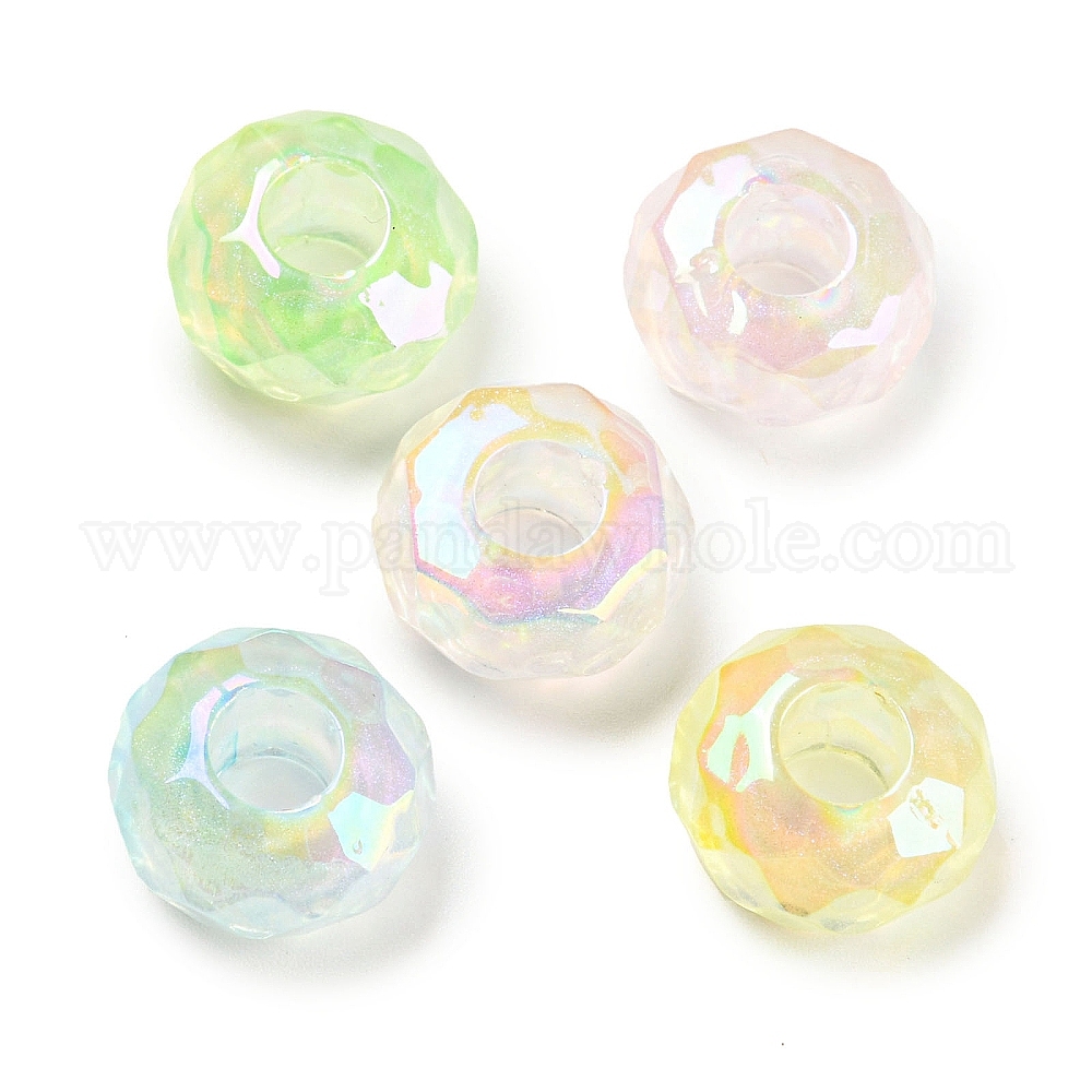 УФ-покрытие Радужные переливающиеся акриловые европейские бусины, бусины с большим отверстием, рондель