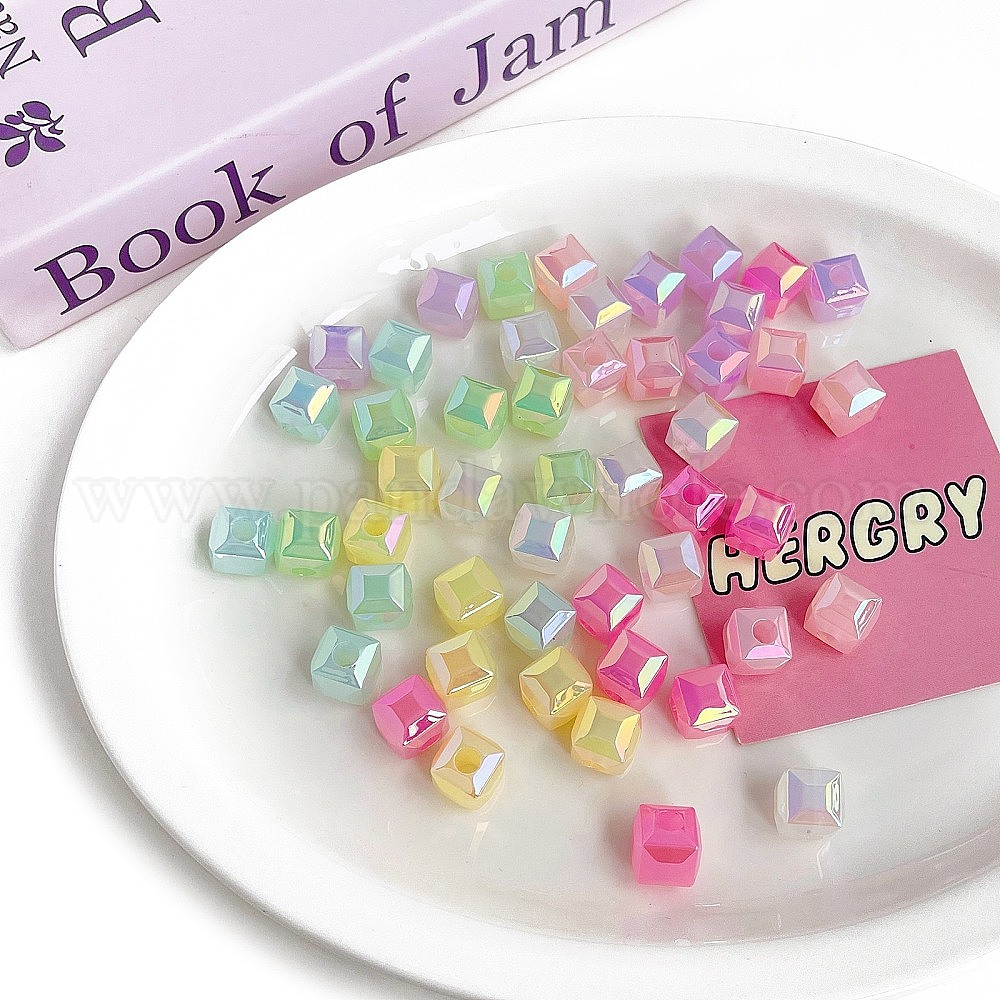 Непрозрачный акрил европейского бисера, бусины с большим отверстием, имитация желе, граненые, кубические (02T4H5)