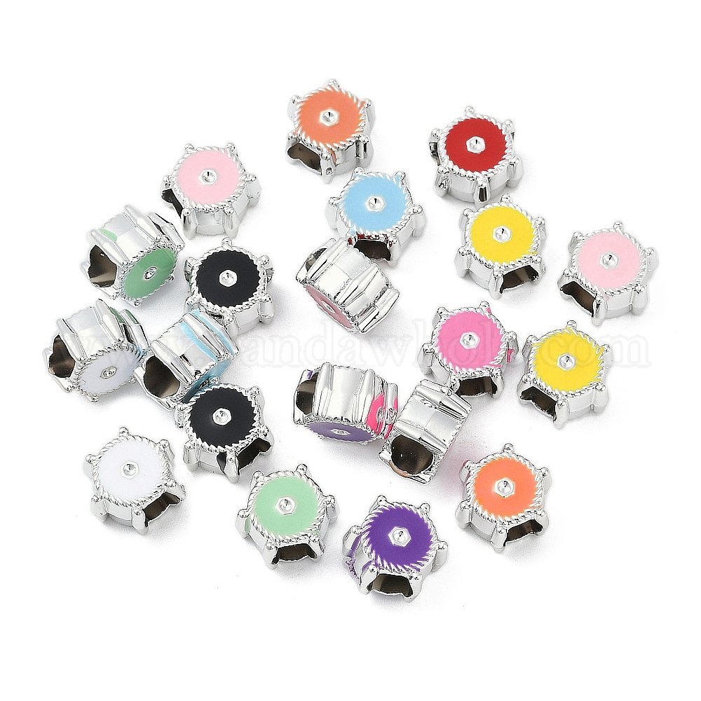 Ccb пластиковые европейские бусины, бусины с большим отверстием, с эмалью, платина, плоско-круглые