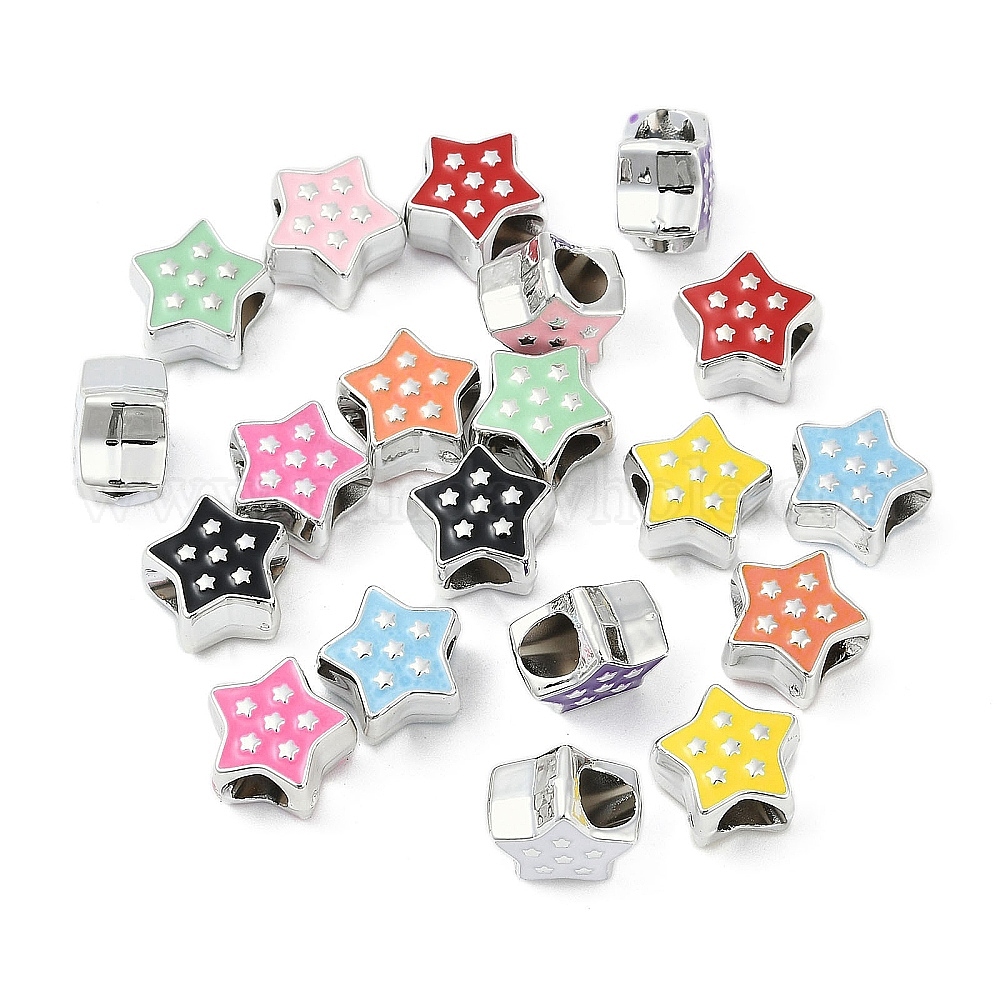 Ccb пластиковые европейские бусины, бусины с большим отверстием, с эмалью, платина, звезда