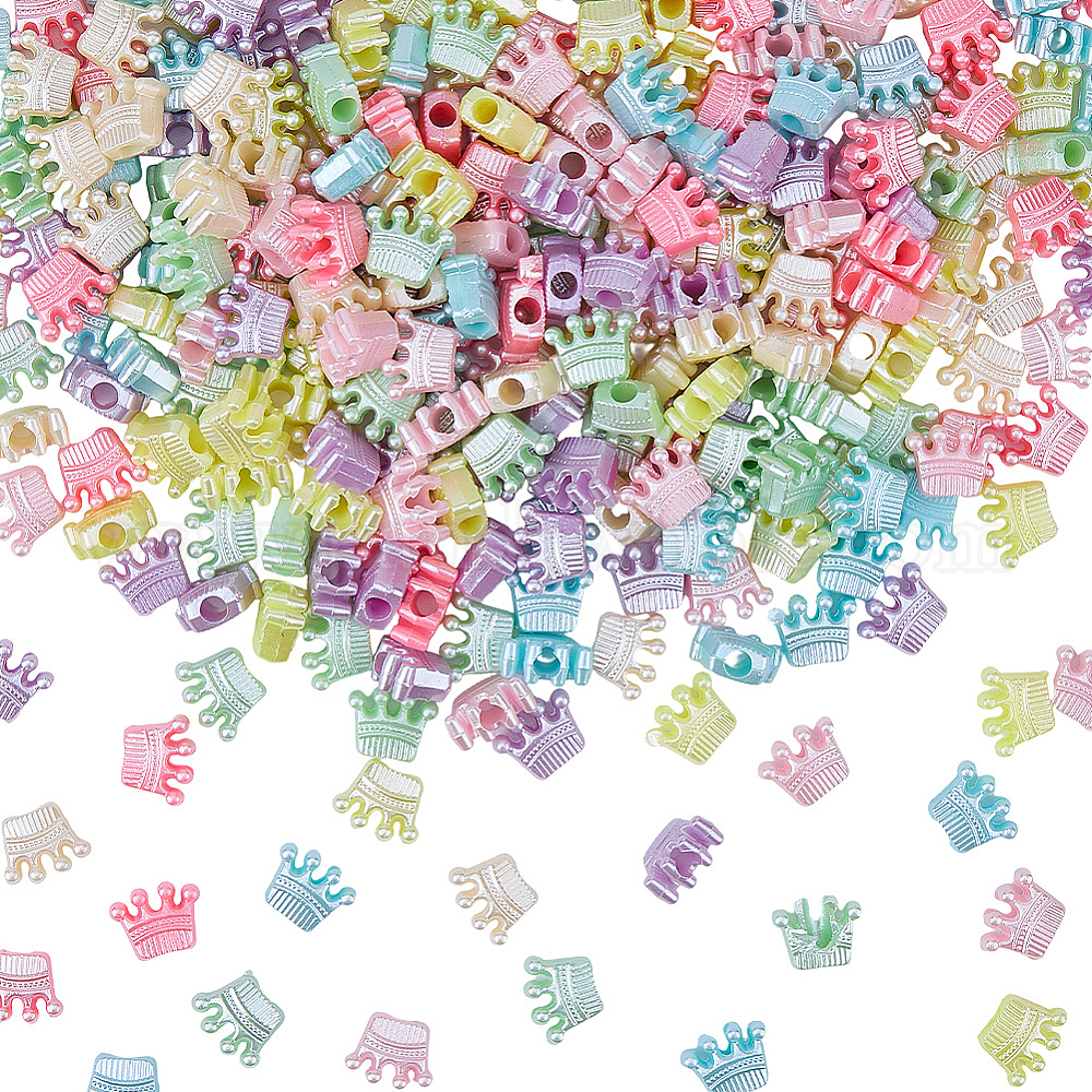 • (52) Непрозрачная лаванда 300шт. акриловые европейские бусины с имитацией жемчуга, бусины с большим отверстием, корона, разноцветные, 10.5x13x6 мм, отверстие : 4 мм