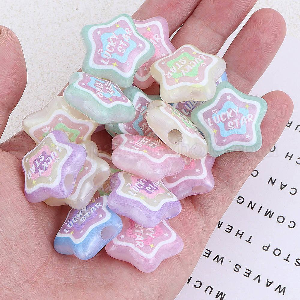 Прозрачные акриловые европейские бусины с принтом, бусины с большим отверстием, звезда