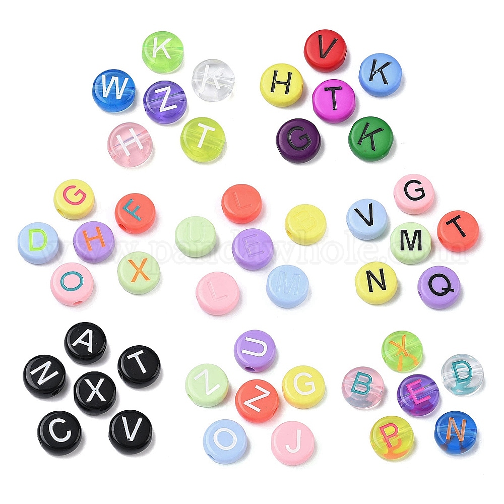 Непрозрачный акрил европейского бисера, бусины с большим отверстием, плоские круглые с буквы