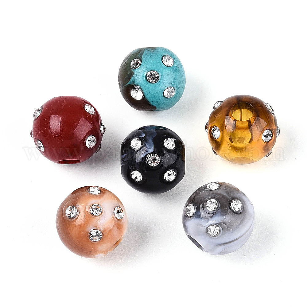 Европейский бусы акриловые, круглые, со стразами, два тона, большое отверстие шарик