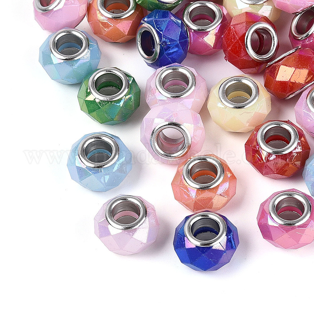 • (52) Непрозрачная лаванда Непрозрачный акрил европейского бисера, бусины с большим отверстием, с медными сердечниками, рондель, с покрытием AB цвета, граненые, платина, разноцветные, 13.5~14x8.5~9.5 мм, отверстие : 5.5 мм