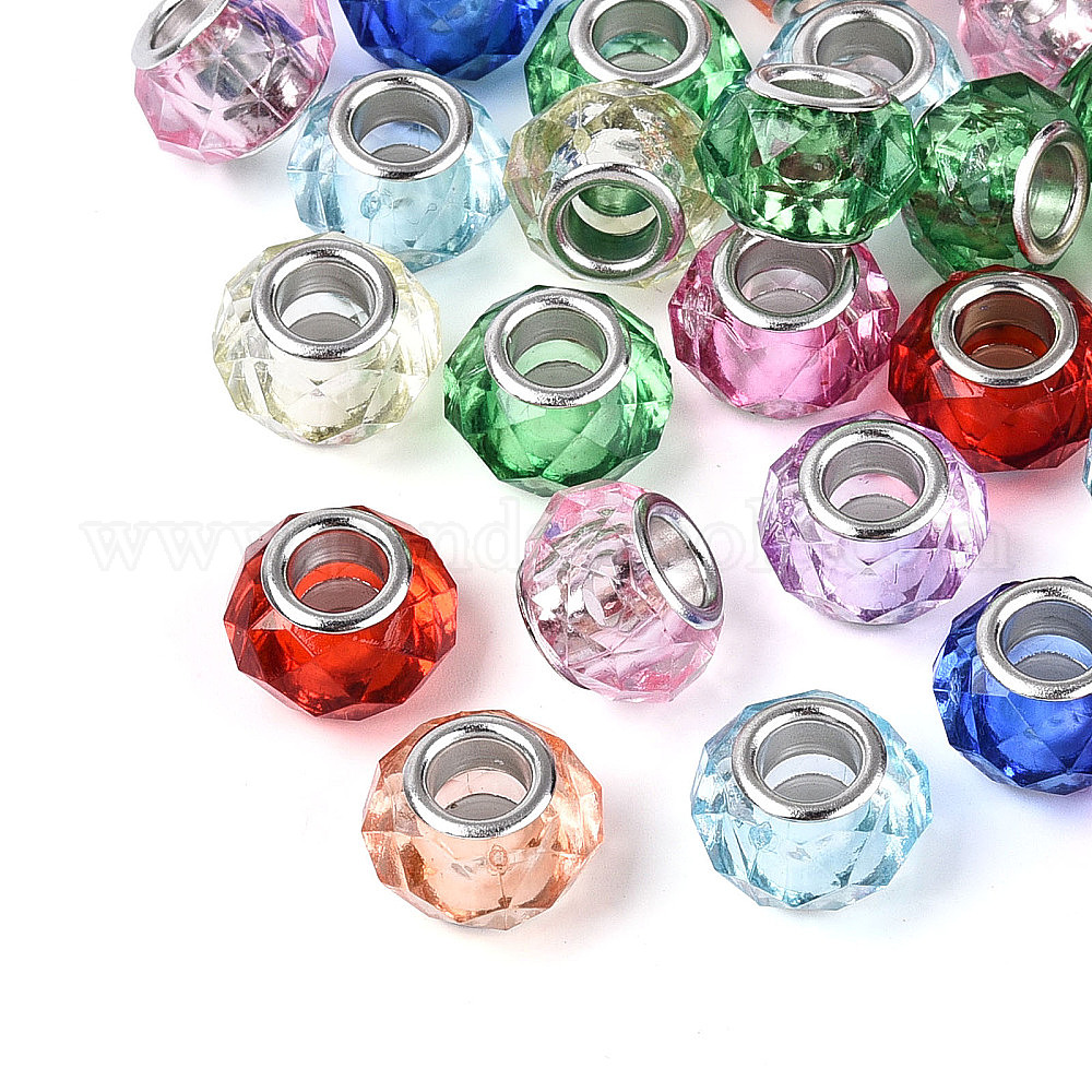 • (52) Непрозрачная лаванда Прозрачного акрилового Европейский бисером, бусины с большим отверстием, с медными сердечниками, рондель, граненые, платина, разноцветные, 13.5~14x8.5~9.5 мм, отверстие : 5.5 мм