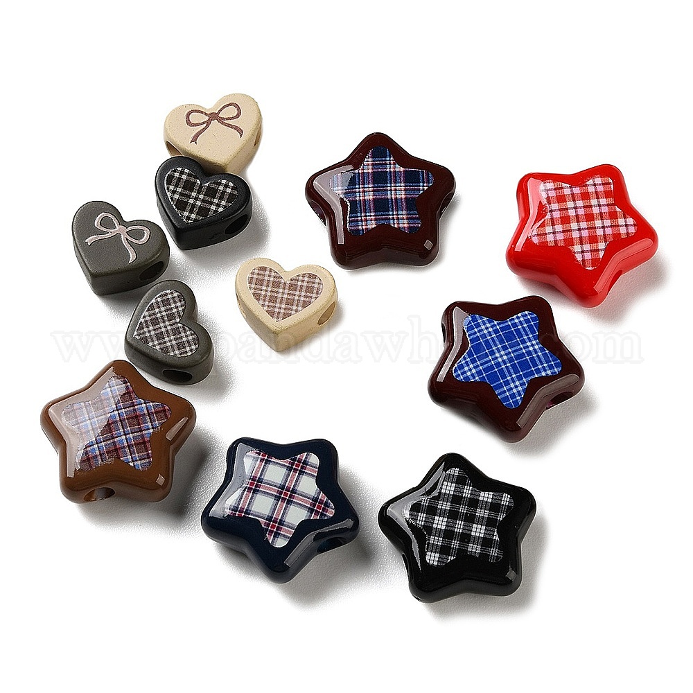 Клетчатый узор, напечатанный на непрозрачном акриле, европейские бусины, бусины с большим отверстием, разноцветные