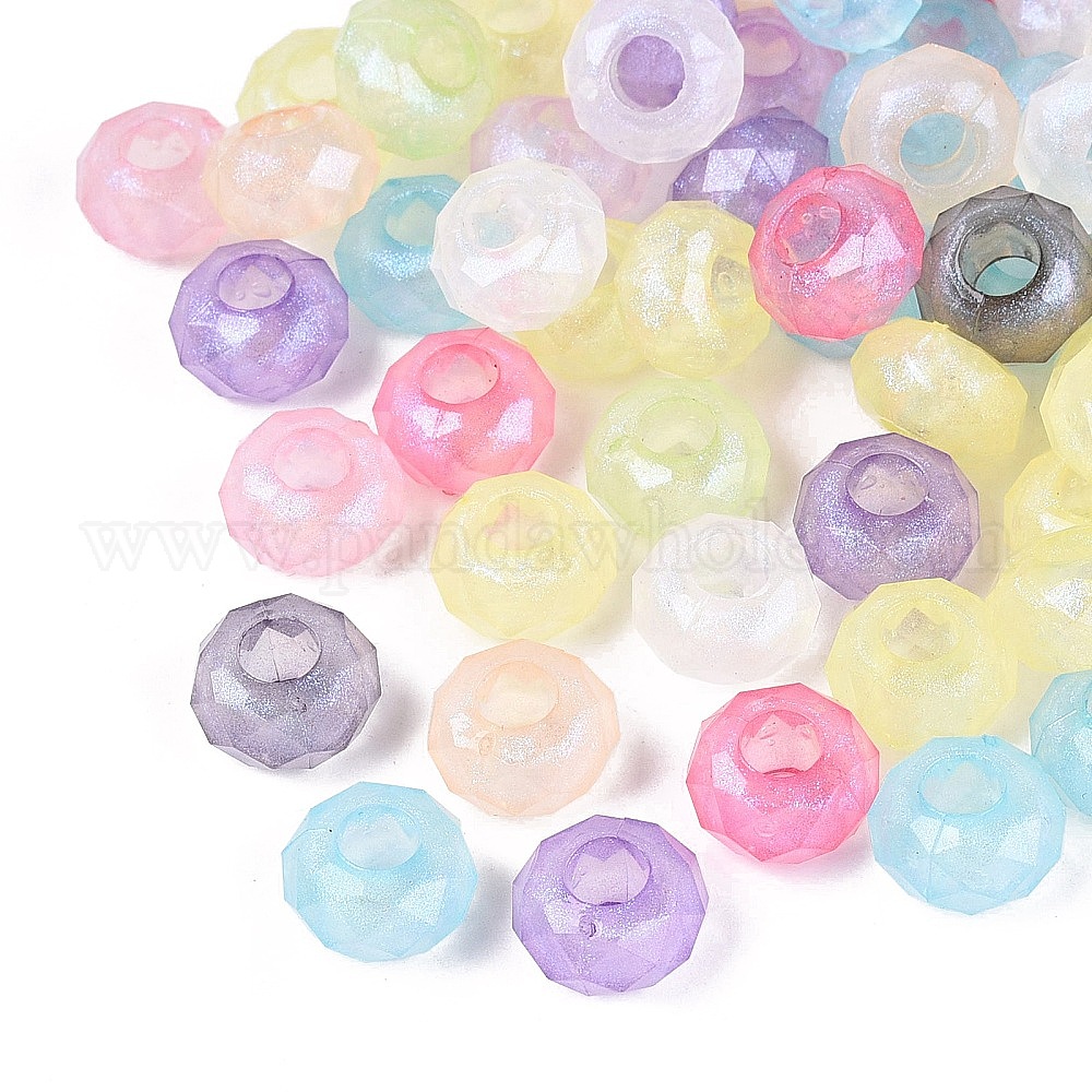 Прозрачного акрилового Европейский бисером, рондель, большое отверстие шарик, с блеском порошок, граненые
