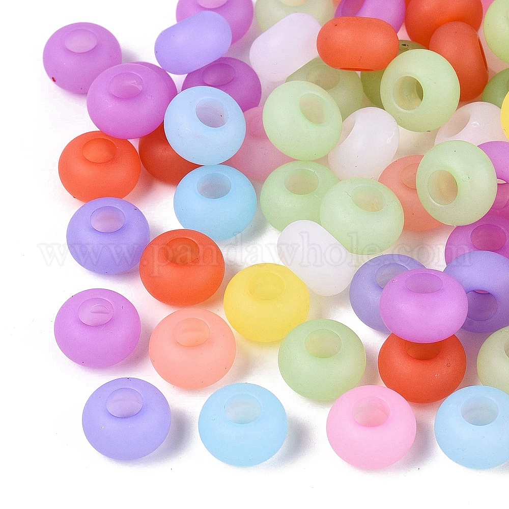 • (52) Непрозрачная лаванда Матовые прозрачные акриловые европейские бусины, рондель, большое отверстие шарик, разноцветные, 13.5~14x8~8.5 мм, отверстие : 5.5 мм, Около 549 шт / 500 г
