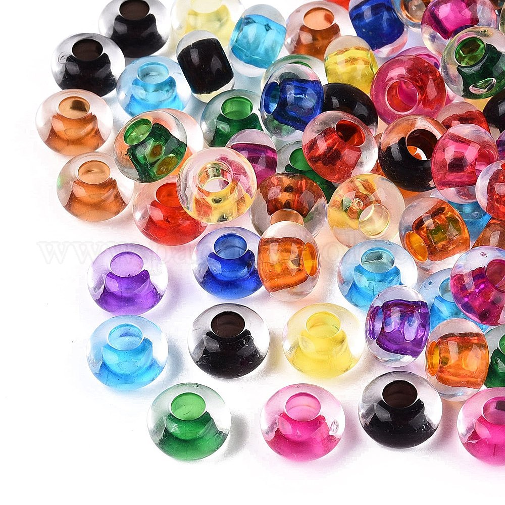 Прозрачного акрилового Европейский бисером, рондель, большое отверстие шарик, Центр окрашенные