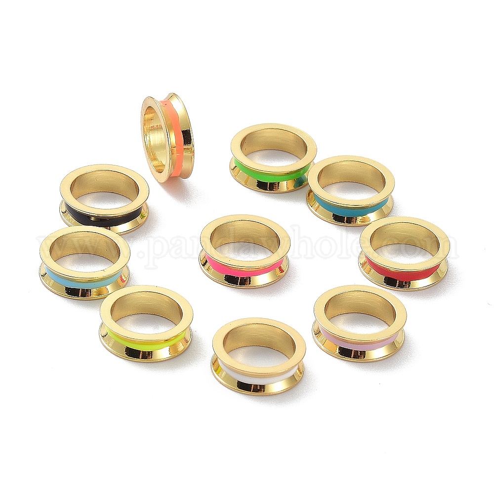 Латунь эмаль европейские шарики, бусины с большим отверстием, долговечный, без свинца и без кадмия, реальный 18 k позолоченный, кольцо