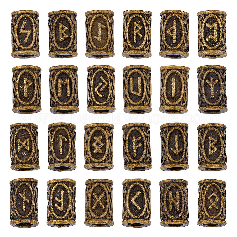 1 набор европейских бусин из сплава, бусины с большим отверстием, столбец с руной / futhark / futhorc