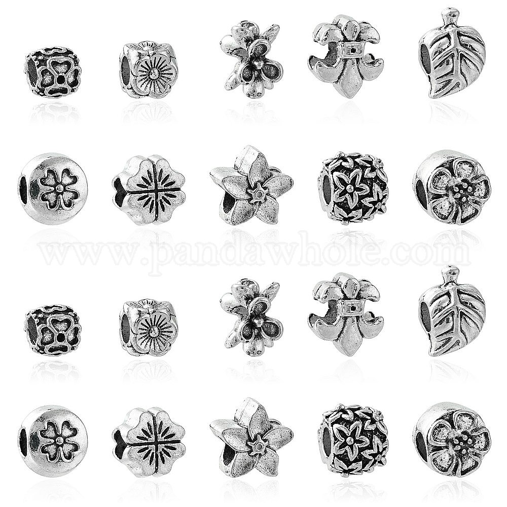 60 шт 10 стили европейские бусины из сплава в тибетском стиле, бусины с большим отверстием, клевер/цветок/лист (02NB9P)