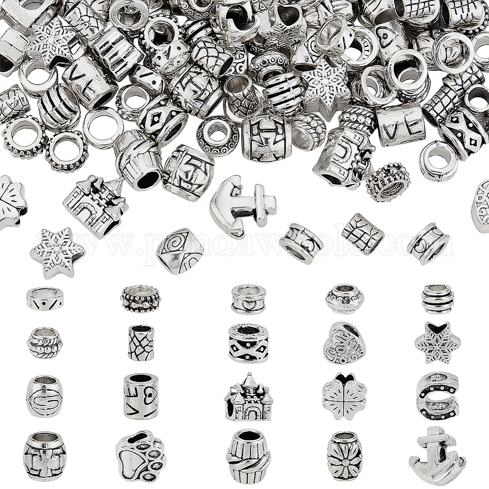 167 шт 20 стиль европейские бусины из сплава в тибетском стиле, бусины с большим отверстием, разнообразные