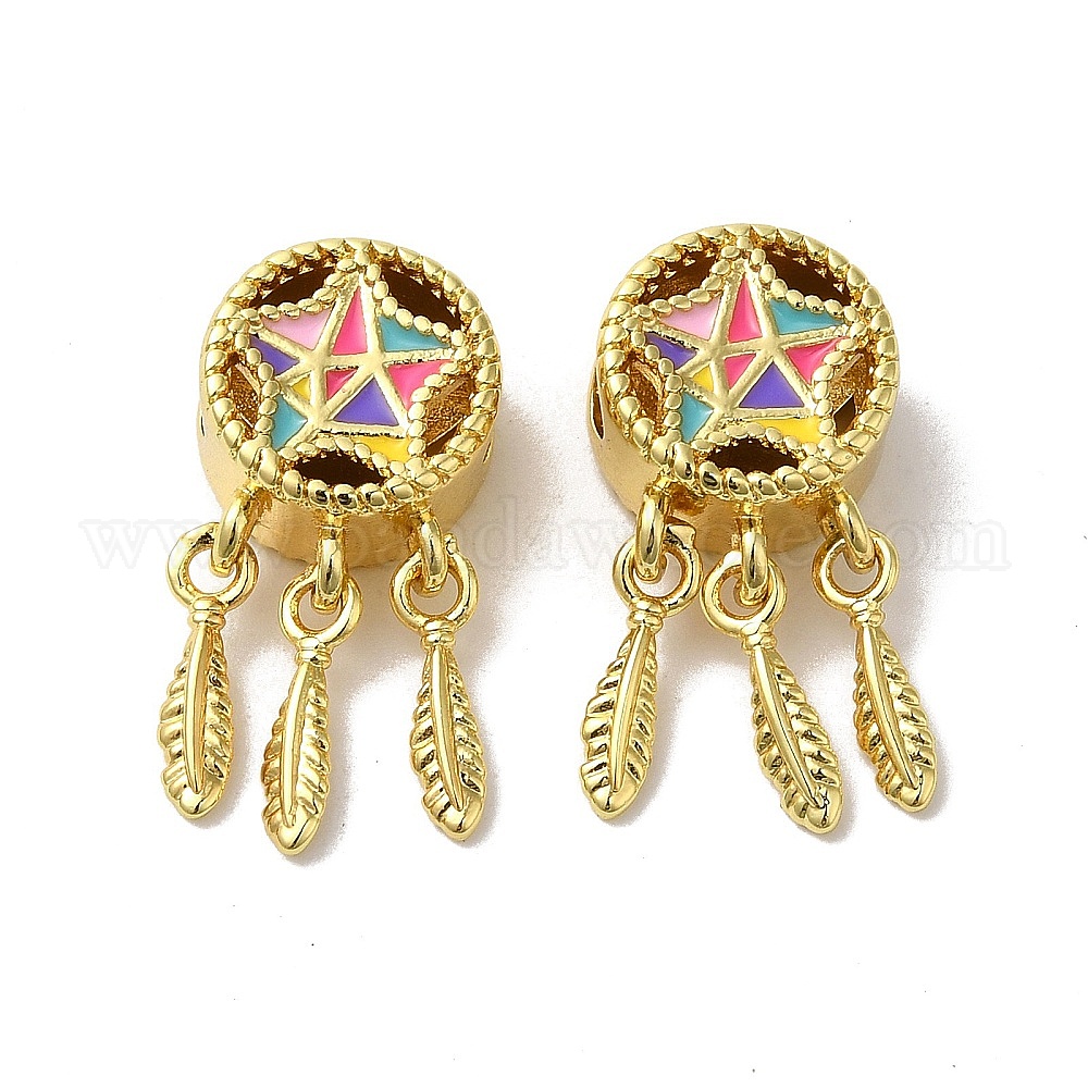 Латунь эмаль европейские шарики, бусины с большим отверстием, без свинца и без кадмия, долговечный, ветряная музыка с пером