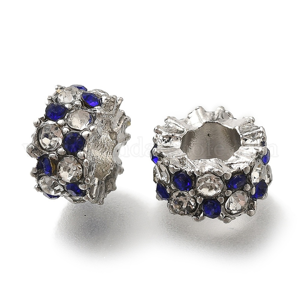 • Платина Стойки покрытие сплава европейские шарики, со стразами, без свинца и без кадмия, бусины с большим отверстием, колонка, платина, 11x6 мм, отверстие : 5 мм