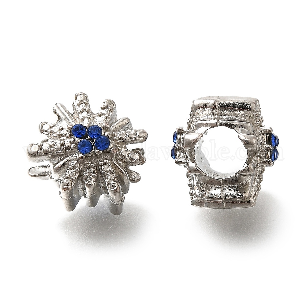 • Платина Стойки покрытие сплава европейские шарики, со стразами, без свинца и без кадмия, бусины с большим отверстием, снежинка, платина, 11x11x10 мм, отверстие : 5 мм