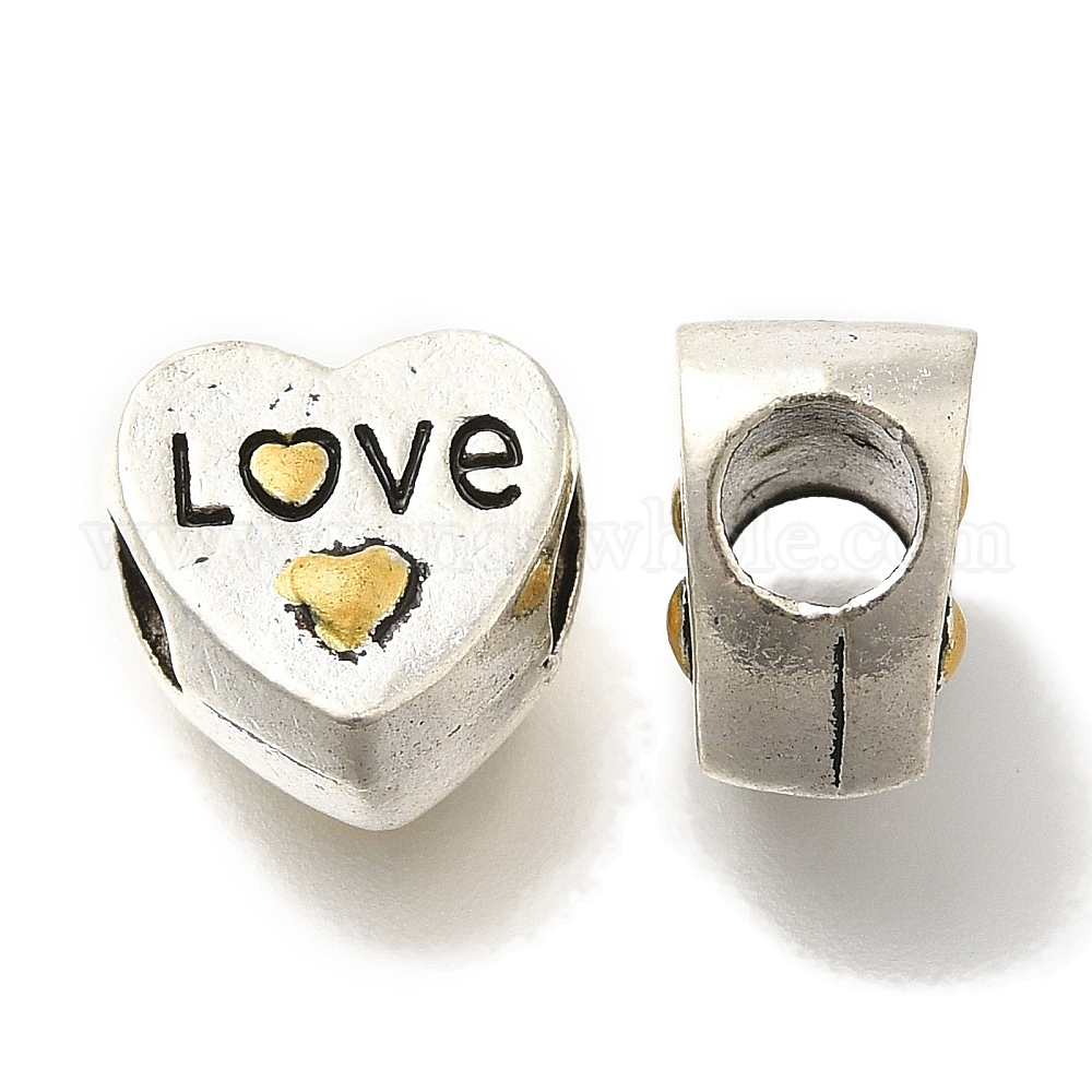 Наберешь покрытие эмали сплава европейские шарики, бусины с большим отверстием, без свинца и без кадмия, сердце со словом "love"