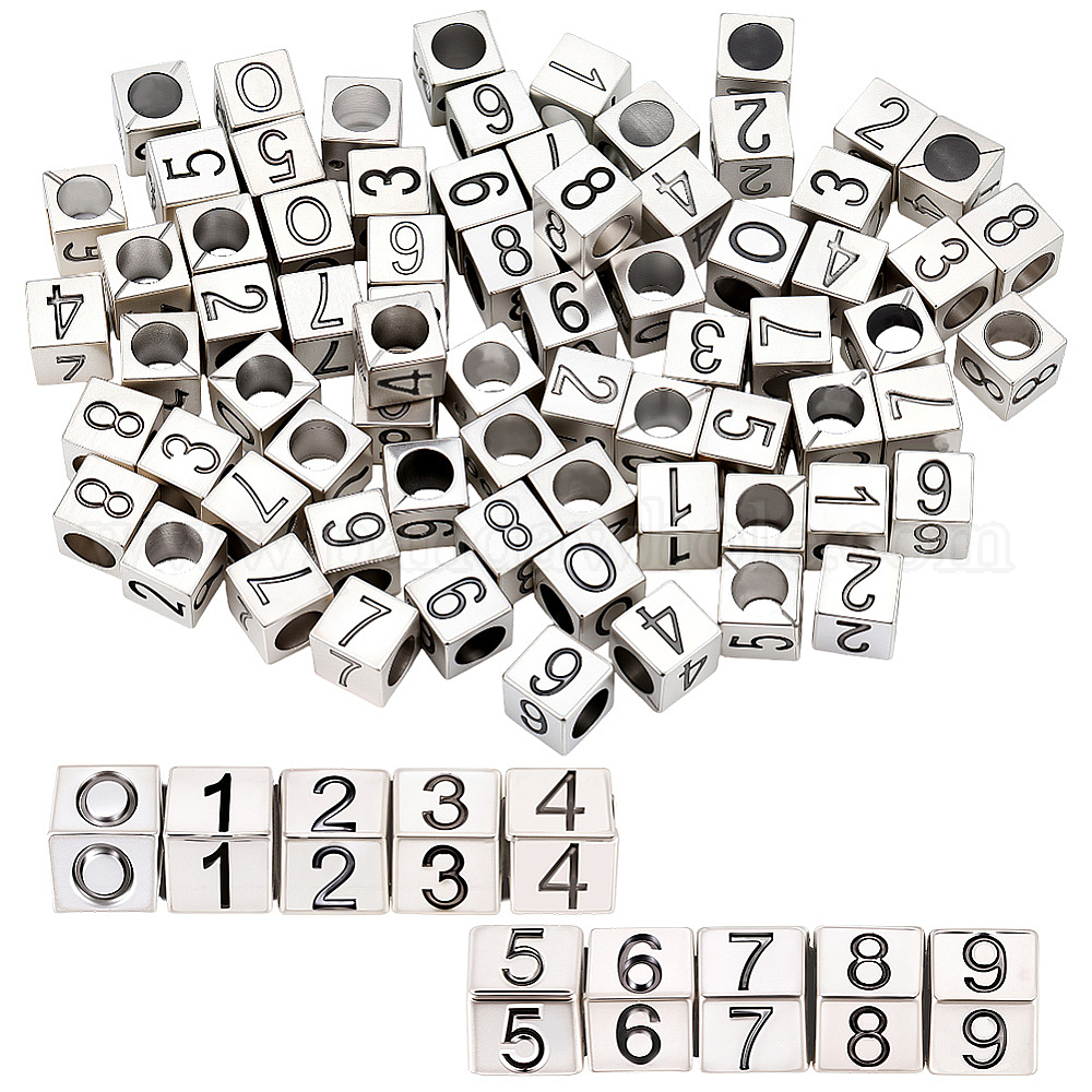 100шт 10 стили сплав европейские бусины, бусины с большим отверстием, куб с номером