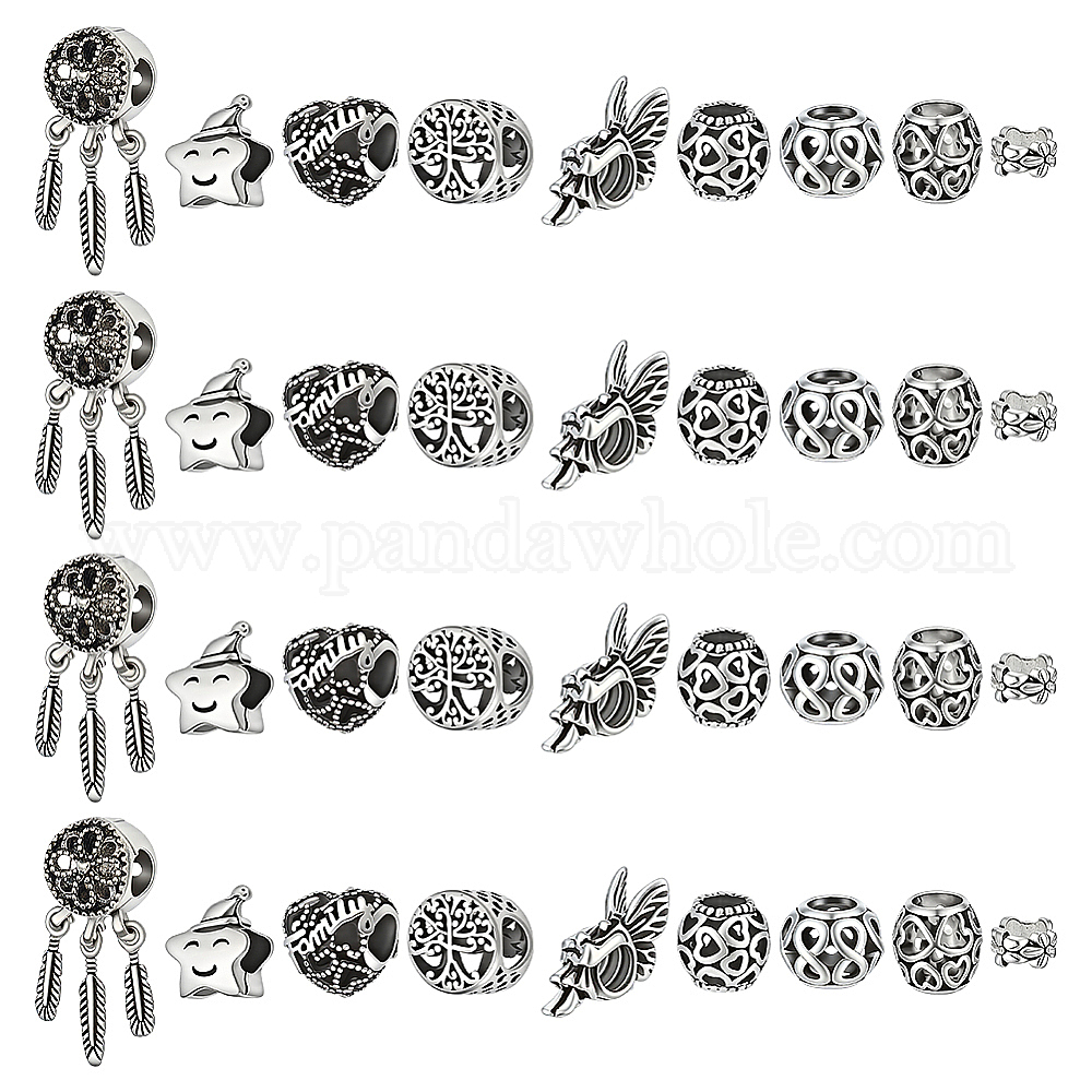 36шт 9 стили сплав европейские бусины, бусины с большим отверстием, разнообразные