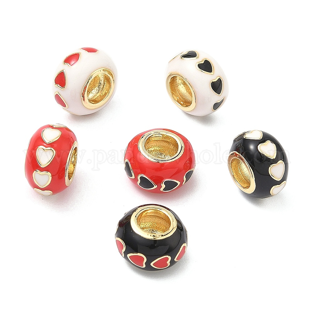 Латунь эмаль европейские шарики, бусины с большим отверстием, стойки покрытие, долговечный, реальный 18 k позолоченный, без кадмия и без свинца, RONDELLE с сердцем