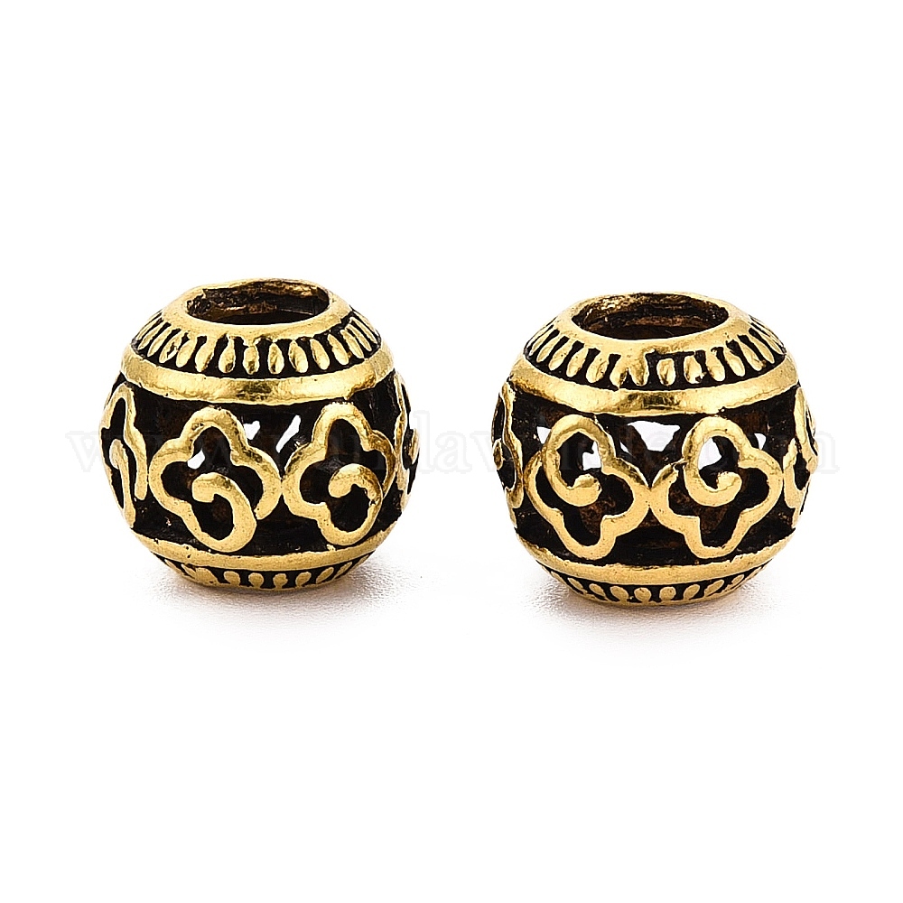 • Античное Золото Европейские сплавочные бусины тибетского стиля , бусины с большим отверстием, полая рондель с клевером, античное золото , 11x9.5 мм, отверстие : 4.5~5 мм