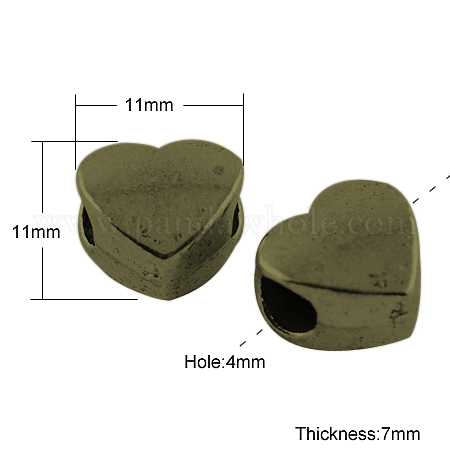 Европейские бусины тибетского стиля , бусины с большим отверстием, без кадмия и без свинца, сердце, 11x11x7 мм, отверстие : 4 мм