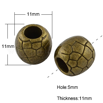 Европейские сплавочные бусины тибетского стиля , бусины с большим отверстием, без кадмия и без свинца, овальные, 11x11x11 мм, отверстие : 5 мм