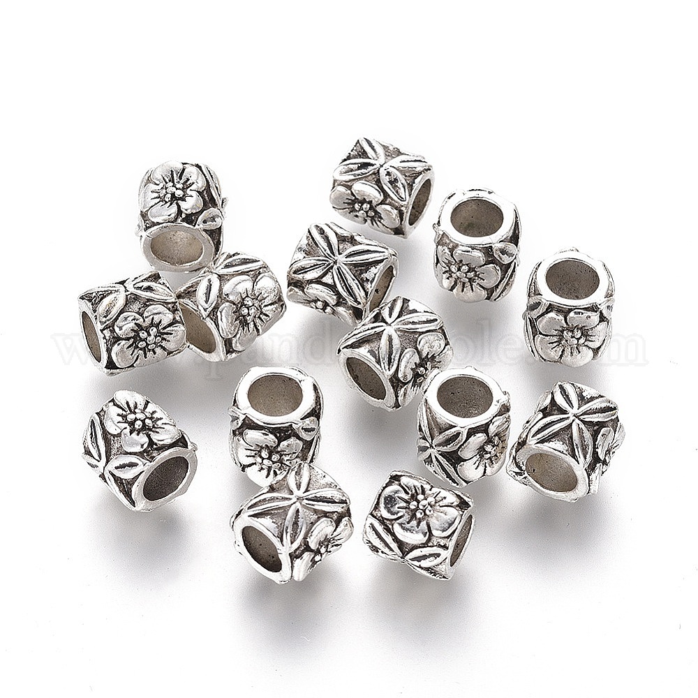 Тибетский стиль столбца европейские шарики, бусины с большим отверстием, без кадмия и без свинца, 9x9 мм, Отверстие : 5 мм , около 440 шт / 1000 г