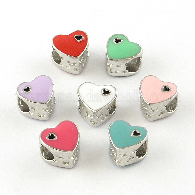 Эмаль стиль сердца платины тон сплава европейские шарики, бусины с большим отверстием, 10x10.5x8.5 мм, отверстие : 5 мм