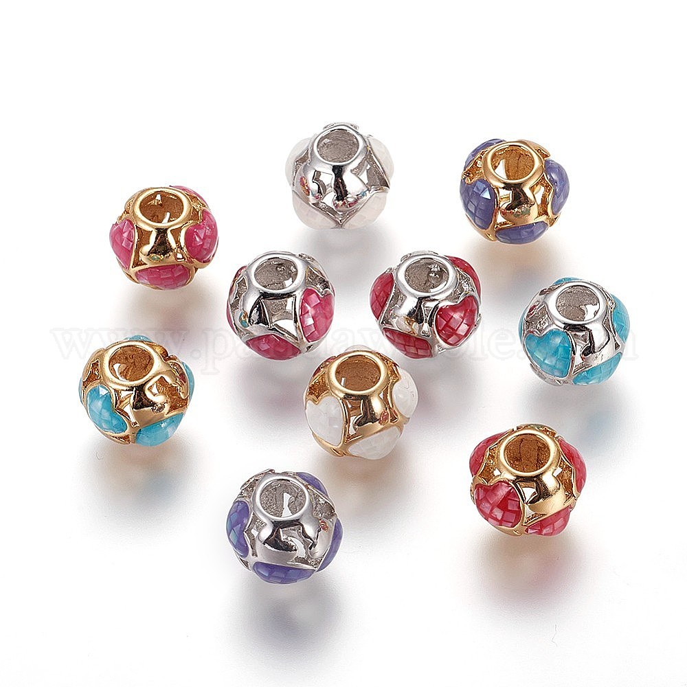 Латуни европейского бисера, бусины с большим отверстием, с эмалью и пресноводной оболочкой, круглые с сердцем (00WKRB)