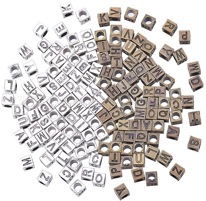 Европейские сплавочные бусины тибетского стиля , бусины с большим отверстием, Куб с алфавитом, включая букву a ~ z