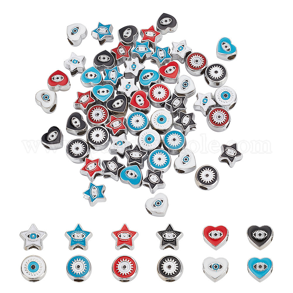 72шт 12 стиль ccb пластиковые европейские бусины, бусины с большим отверстием, звезда/сердце/плоская круглая со злыми глазами