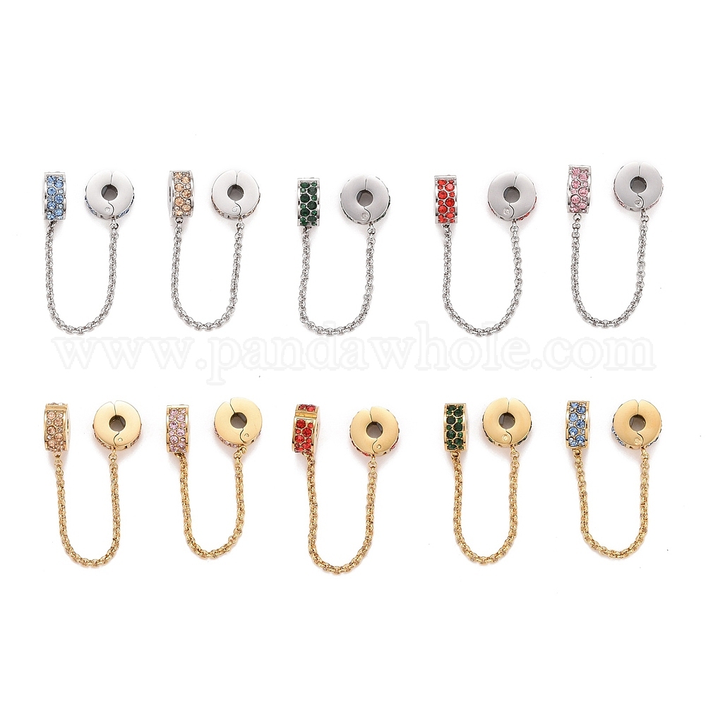 304 плоские круглые стопорные брелоки из нержавеющей стали, европейские застежки, со стразами, для европейских браслетов с шармами