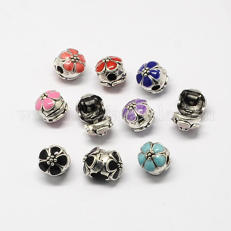 Сплав эмали европейские застежками, цветочные большое отверстие бусы, 11x12 мм, отверстие : 3 мм