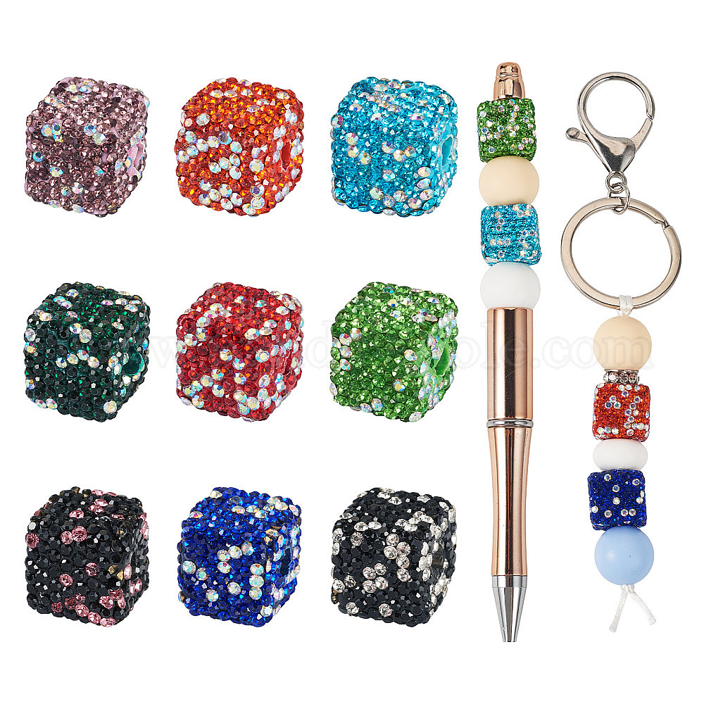 9шт 9цвета бусины из полимерной глины ручной работы со стразами, бусины с большим отверстием, кубические