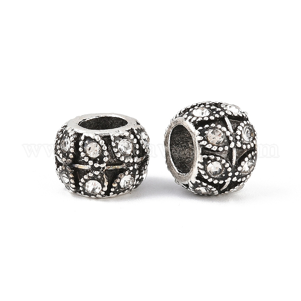 Старинное серебро покрытием горный хрусталь сплава большое отверстие шарики европейца, Rondelle с листа, 9x7 мм, отверстие : 5 мм