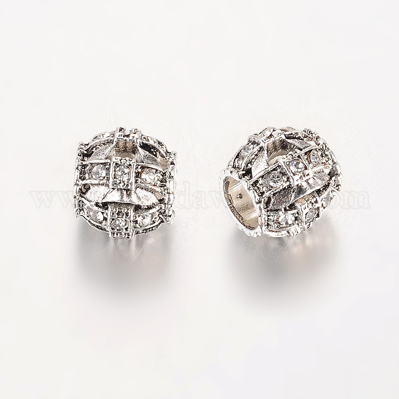 Старинное серебро покрытием сплава горный хрусталь европейских бусы, большие отверстия баррель бисером, 11x10 мм, отверстие : 5 мм