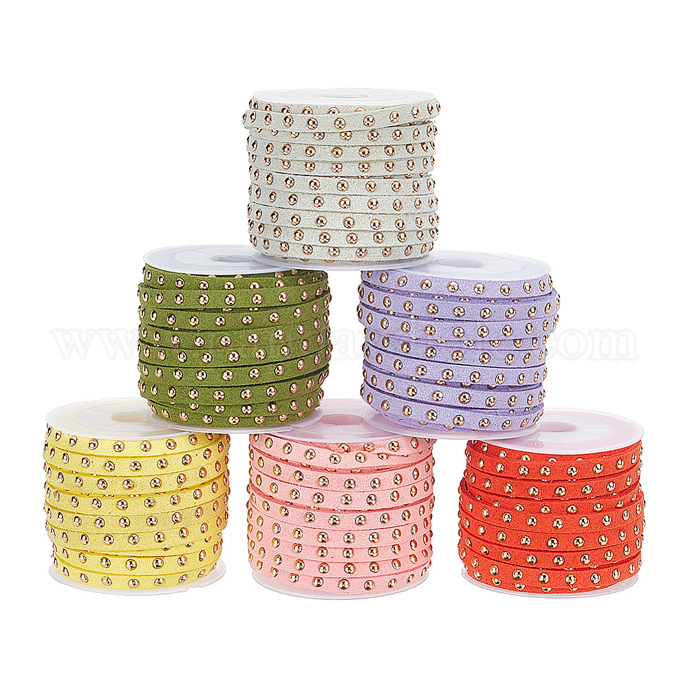 6 рулоны 6 цвета искусственной замши шнур, с заклепкой из золотого тона, для панк-рок ювелирных изделий