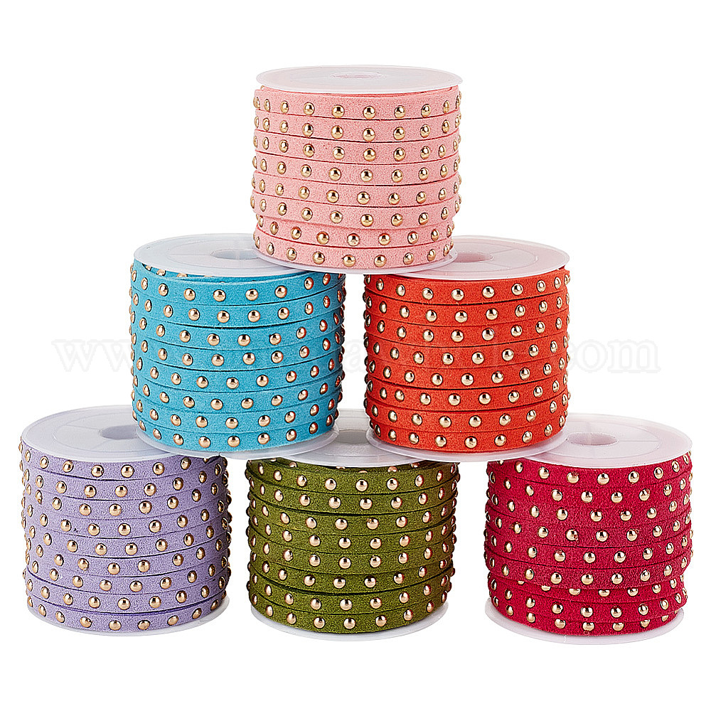 6 рулоны 6 цвета искусственной замши шнур, с заклепкой из золотого тона, для панк-рок ювелирных изделий