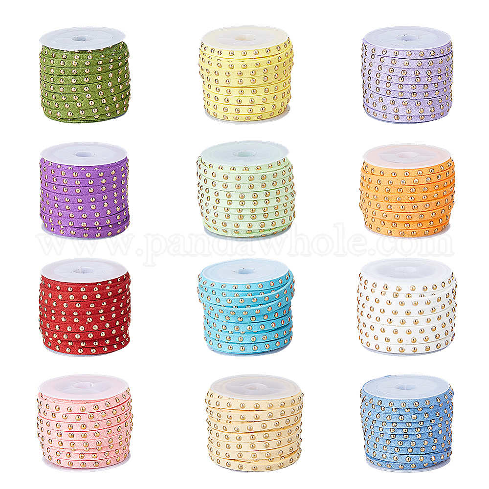 12 рулоны 12 цвета искусственной замши шнур, с заклепкой из золотого тона, для панк-рок ювелирных изделий