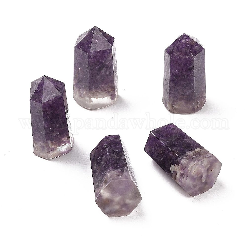 Остроконечная пуля из смолы украшение для дома, с крошкой из натурального драгоценного камня внутри, шестиугольная призма