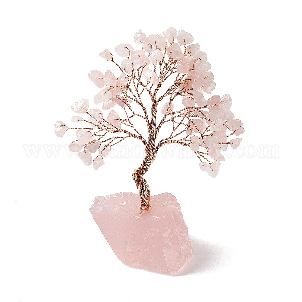Украшение дисплея дерева из натурального драгоценного камня, украшение фэн-шуй из натурального розового кварца для богатства, удача, латунная проволока из розового золота, обернутая (02E4Q9)