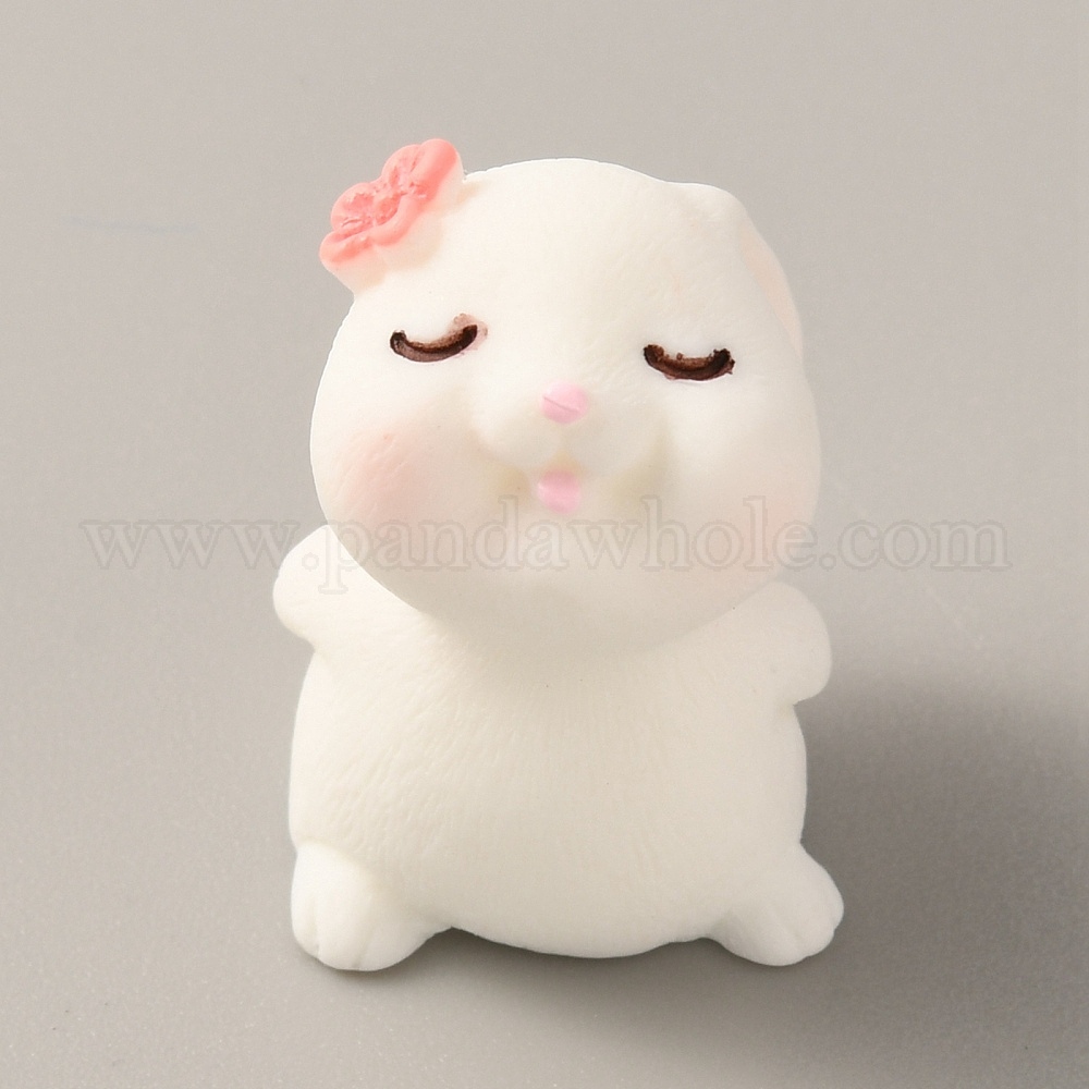 • Узор Кролика Украшения дисплей смолы, аксессуары для украшения сада, кролик с морковкой, белые, 25x25x42.5 мм