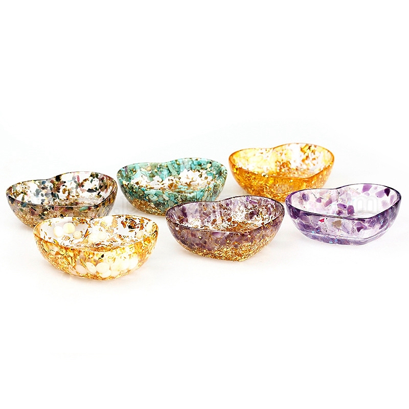 Смола украшения дома дисплей, с чипсами из драгоценных камней и золотой фольгой внутри, сердечная тарелка